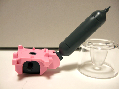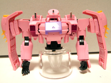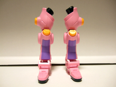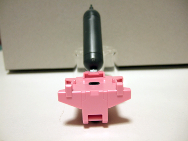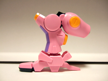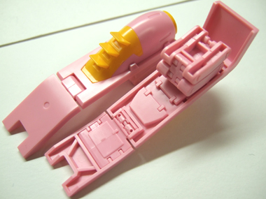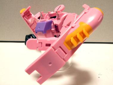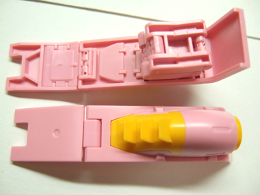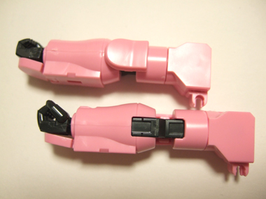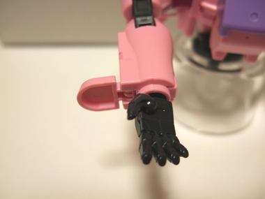 手の甲の部分にかぶるピンクのパーツは写真のように、90度ほど可動します。