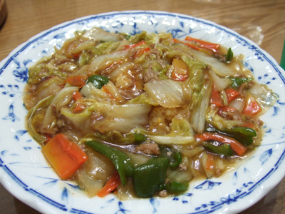 あんかけの具が、白菜とにんじんとピーマンしかなかったのでそれだけで・・・。